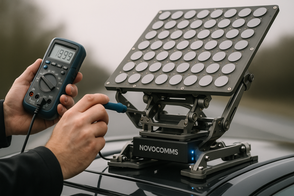 Electronically steered Ka-band user terminals live or die by array calibration. On a bench, it’s straightforward to align channels, flatten phase shifter states, and hit EIRP/G/T targets. On a moving platform—vehicle roof, maritime, aero—the same terminal sees continuous attitude changes, vibration, airflow-driven temperature gradients, and PA self-heating. Those effects translate into time-varying phase/gain errors that […]